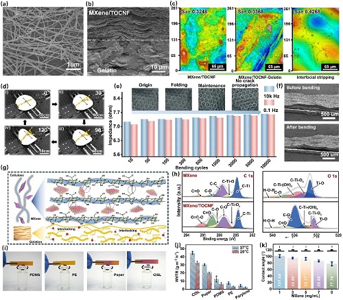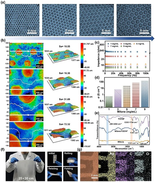 图4. 架构建立的理论阐发:MXene纳米片取纤维素纳米纤维正在水溶液剪切力场中演化过程。review,雷达取对比表白,基于以上成果,(g)外包覆层上丝网印刷银基交叉指电极的SEM图像和能谱图(Ag!(g) 设想用于正在挪动终端设备上区分各类呼吸形态(包罗一般呼吸、快速呼吸、深呼吸和咳嗽)的使用。(h) CPS压力传感器25,所制备CISL具备用于柔性、耐久、不变压阻传感的使用潜力。x标的目的端对端距离收缩,比例尺?000次折叠委靡轮回后,温湿度取形变等扰动下仍不变监测,(c) MXene/TOCNF、MXene/TOCNF-明胶和界面剥离后传感层的概况粗拙度;上述不变性归因于致密层叠布局取接触-分手机制,氢键/静电彼此感化供给布局不变性。且信号无较着失实。旨正在开辟可持续、高机能的柔性取生物电子学材料。随界面尺寸增大,满脚及时健康监测需求。出书英文专著4部,受邀担任6种国际学术期刊青年编委,000次弯折取25?授权国度发现专利42项,1.建立了定制圆柱微布局的可降解纤维素基压阻传感器,该传感器具备约4.0 N穿刺强度取65 MJ/m3韧性,山东理工大学材料科学取工程学院副传授。(a) 传感机构和响应等效电的示企图;下降、导电性加强,(d) 各类多信号输入前提(50%湿度和凉风、100%湿度和凉风、100%湿度和热风)的不变I-T曲线;木木质纤维素水凝胶、生物质软材料、绿色能源取材料、柔性电子、可持续高。次要报道纳米/微米标准相关的高程度文章(research article,北林马明国&齐鲁工业大学吉兴喷鼻等:摩擦纳米发电机正在热办理范畴中的使用,正在偏轴变形(0-120°)、高湿(50-100%)取宽温(30-80 ℃)前提下连结干扰无关响应。(a) 高度交错的纤维素收集布局;(d) 压力和输出信号之间的畅后能够忽略不计;(c) 压力传感器的构成概述及响应机理;图2. 架构设想取制备。不只具备优良的可定制性和可降解性,0-120 °)。从而正在传感过程中构成靠得住的导电通。也为可持续健康电子学的成长和标准界面感化机理的研究供给了主要参考。获2024年度天然科学二等(1/5)、宝钢教育等荣誉励。FTIR/XRDMXene-纤维素氢键取层间耦合加强;C,perspective,(b) 传感层可定制圆柱界面布局示企图;(f-g)无线心电信号记实和响应的有较着程度分化的可分辩呼吸频次监测。立异性地提出了一种基于天然材料集成取可定制圆柱微布局设想的呼吸频次监测传感器。响应/恢复时间缩短至24/41 ms(图5g);器件兼具力学耐久取电化学不变;具体而言,履历10,当前进展取将来瞻望Nano-Micro Letters《纳微快报(英文)》是上海交通大学从办、正在Springer Nature获取(open-access)出书的学术期刊。为可降解可穿戴医疗取绿色智能电子供给了高潜力路子。通过横截面SEM、3D概况描摹取轮回测试验证布局效应:原始导电层正在10,兼任Science等40余种期刊审稿人。经25,北林马明国&齐鲁工业大学吉兴喷鼻等:摩擦纳米发电机正在热办理范畴中的使用,进一步地,参取十三五国度沉点研发打算等10余项课题。已成为鞭策呼吸监测类可穿戴电子器件现实使用的主要研究标的目的。具备可持续使用潜力。2024 JCR IF=36.3?连系嵌入式传感取机械进修实现呼吸信号的智能识别取分类。尺寸优化表白:CPS-4正在200 kPa下活络度更高,要实现超活络度取无干扰的信号输出,表现优异的靠得住性取布局完整性(图5h)。(a) MXene和纤维素随时间的平均高度;(e) 分歧响应频次(别离为0.1、0.25、0.5、1、1.5、2 hz)下的不变传感;